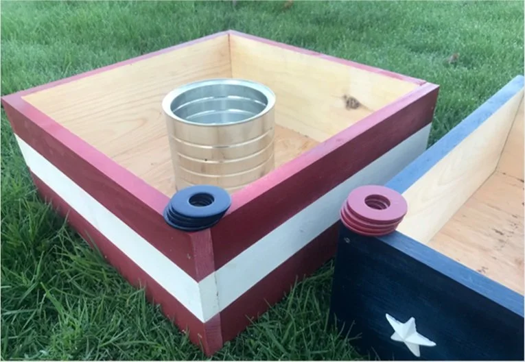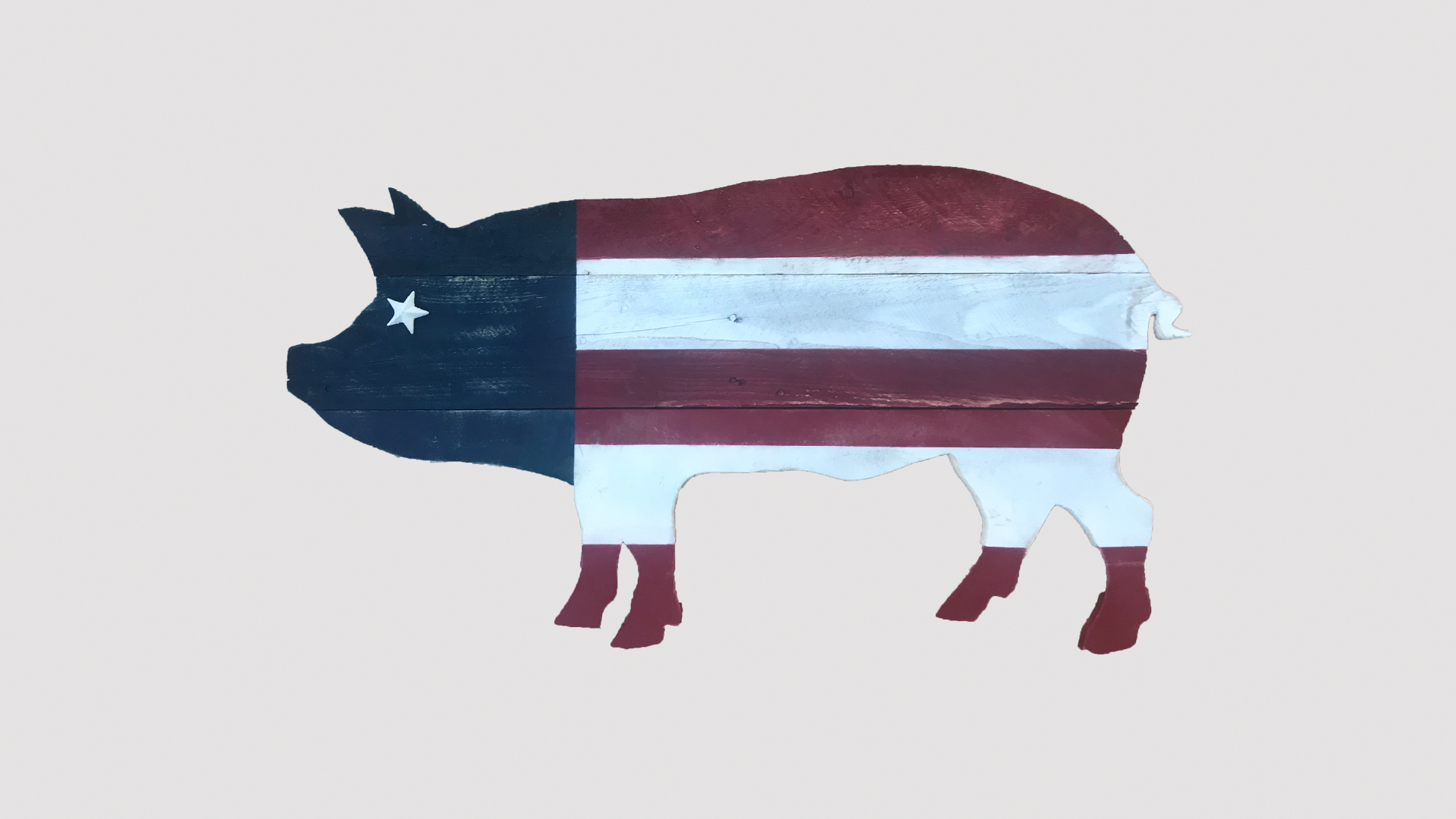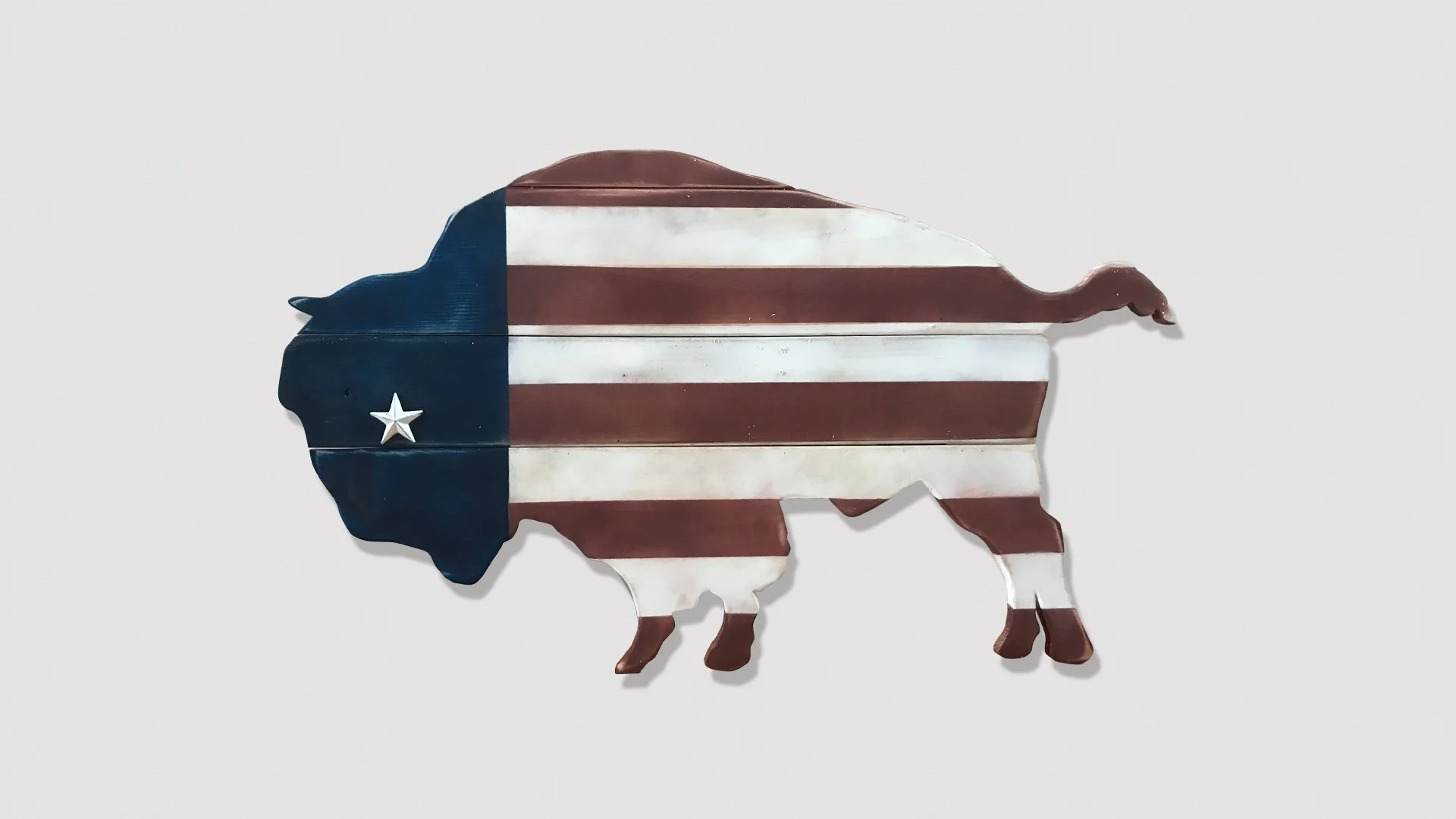 Celebrating the red, white and blue in hand-painted, reclaimed wood and finished with cast iron stars